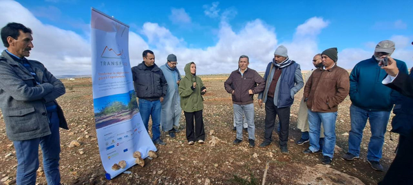 La visite sur le terrain a réuni des représentants de plusieurs associations d'agriculteurs de la province de Chtouka Ait Baha, dans la région sud d'Agadir, qui souhaitaient en savoir plus sur les activités d'AGENDA et d'ANDZOA dans le cadre du projet TransforMed.