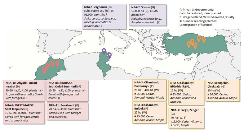 In Tunisia, Türkiye and Morocco, TransforMed has identified 4 lighthouses, e.g., areas already successfully restored using AFS in degraded land. TransforMed will use these experiences to promote the adoption of AFS into 11 new areas, i.e., wind eroded, salty and degraded areas.